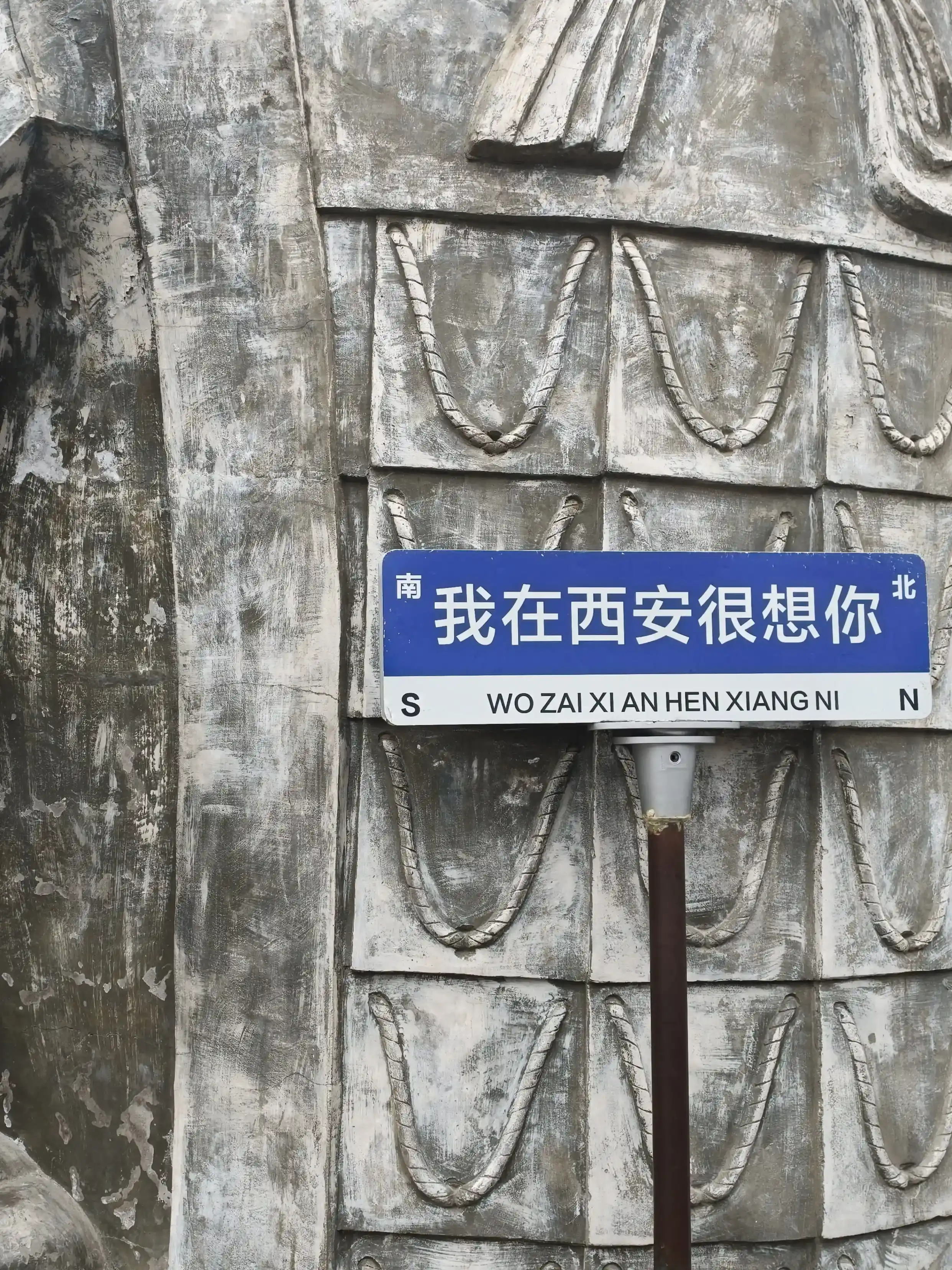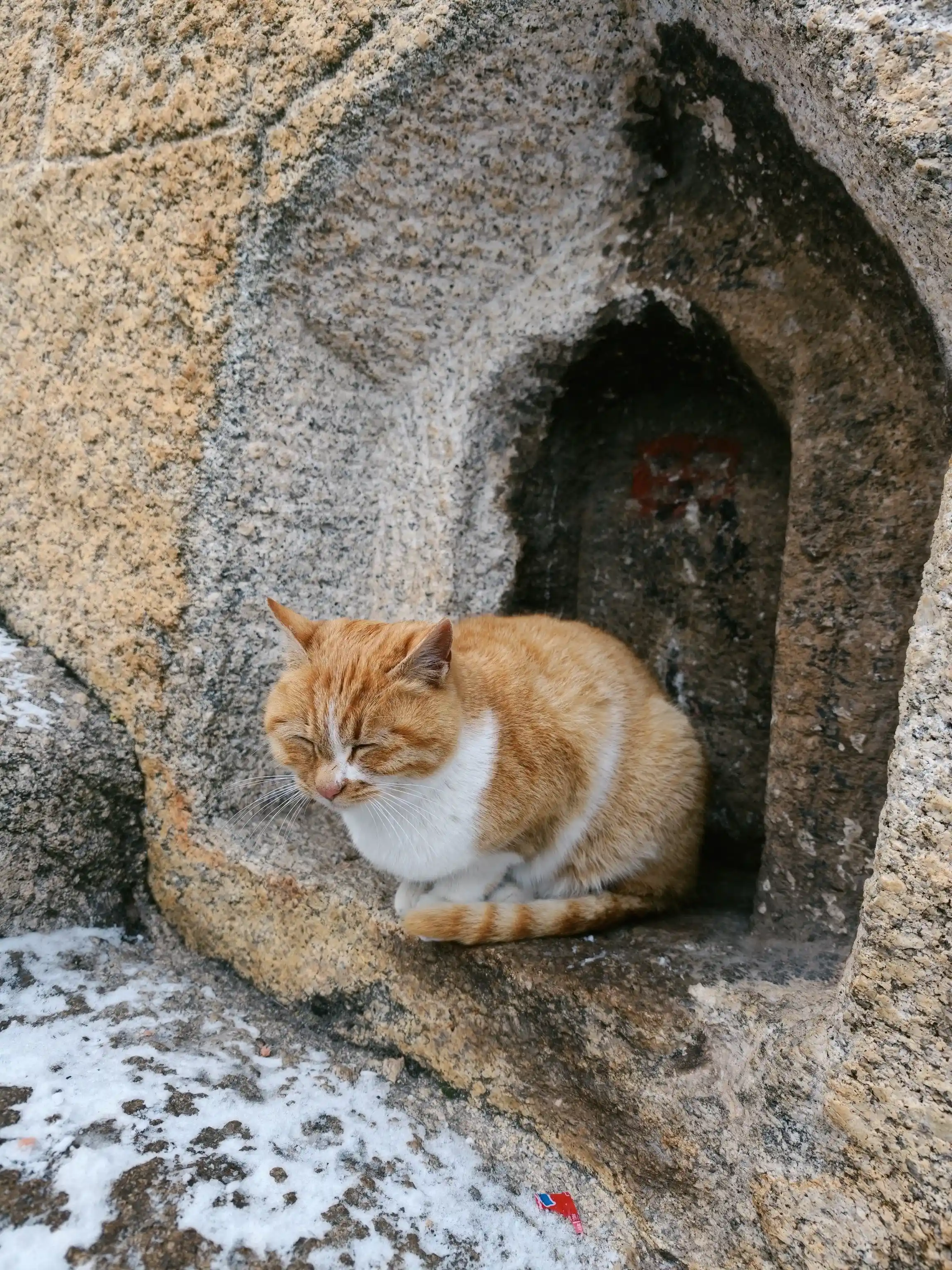 位置很有意思,刚好在阶梯右侧的一个槽中,路过的人都要摸两下