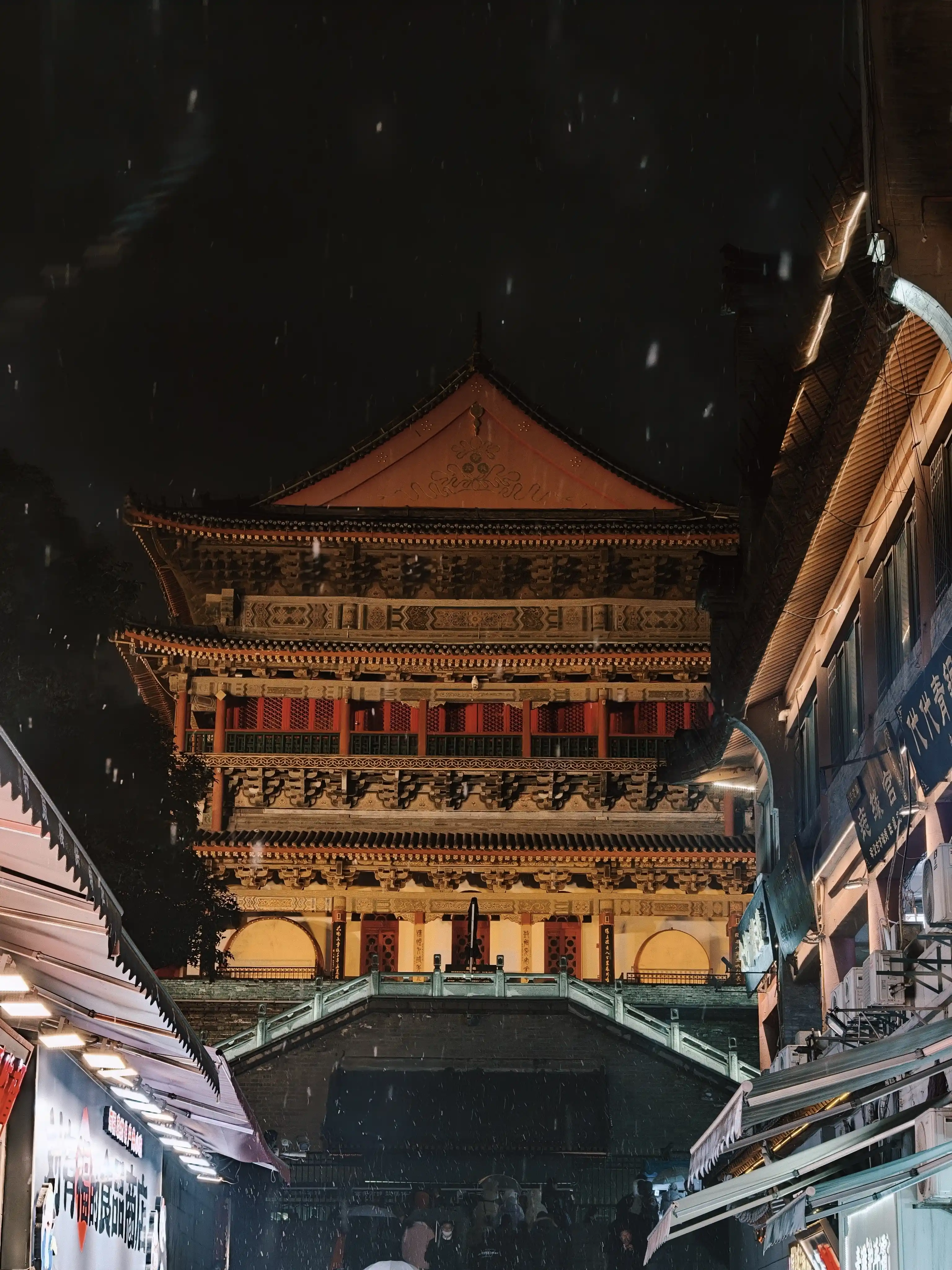 鼓楼侧边的商业街拍的,正好下雪了